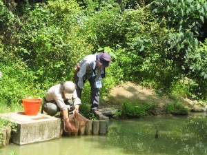 作業の間だけ仕掛けたわな篭に入ったザリガニは97匹・・・!