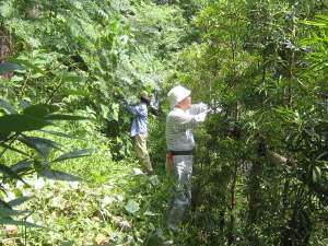 実生やひこばえのセンダン、アカメガシワ、ヌルデなどの伐採、クズ、ヤブガラシなどツル植物の除去など、