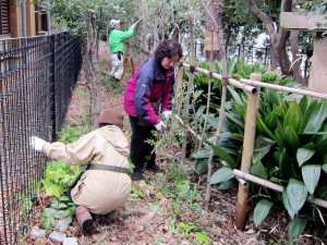 ごみ拾いをした後、落ち葉掃きやイボタノキの剪定などの管理作業と、