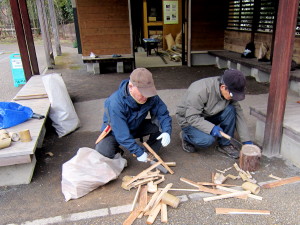 3月11日の「春のイベント」に向けて、薪割りやかまどベンチの点検を行いました。