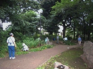 その他、ビオトープ池周辺の整備や、雨の日に水浸しになる園路脇に溝を掘る作業姿も見られました。
