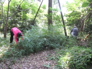 植物たちが元気な夏は作業が多く、笹刈り、雑草刈り、落葉溜め整備など数か所に分かれて活動しました。