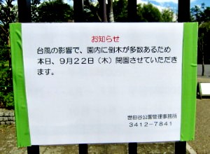 9月21日(水)に東日本を縦断した台風15号が東京を直撃し、三宿の森にも被害が見られたため、