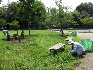 草の広場のアレチノギクなど大型雑草の草引きや保全区域のシラカシの選定などを行いましたが、