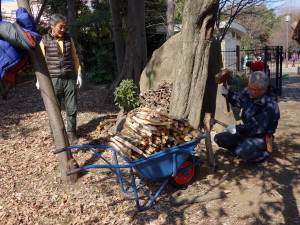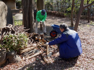 3月13日に予定している防災イベントに備えた薪作りなどの作業をしていると、