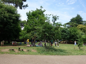園内にはレジャーシートの輪がいくつも広がって行きました。 |