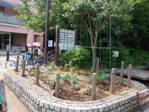 モチノキを剪定したり、支柱立て、苗植えなど菊花壇作りも進みました。