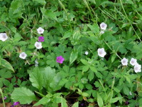 色付いたサネカズラの実や可憐な紅白のゲンノショウコの花が秋本番を告げていました。 |