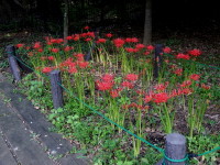お彼岸頃に目を楽しませてくれたヒガンバナ(写真は9月半ば)が花の終わりを迎えた三宿の森で、