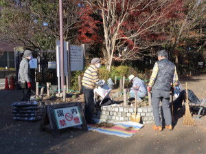 菊花壇は根を撤去した後、腐葉土などをすき込んで、来年に備えた土づくりをしました。