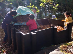 来年もみどりの恵み豊かな一年を過ごせるよう願いを込めてみんなで落ち葉ひろいをします。」