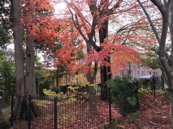 初冬の三宿の森は2か月前にサルスベリから始まった紅葉を締めくくるように、