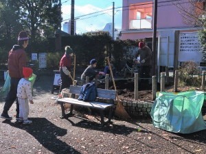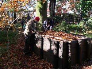 シーズンが終わった菊花壇では、支柱類を洗って収納したり、根っこを取り除いて、