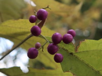 左より: センリョウ ヒサカキ ムラサキシキブ