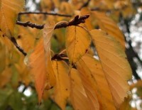 三宿の森へ行くとビオトープ池近くのコブシが見事な黄葉となり、森を明るく彩っていました。